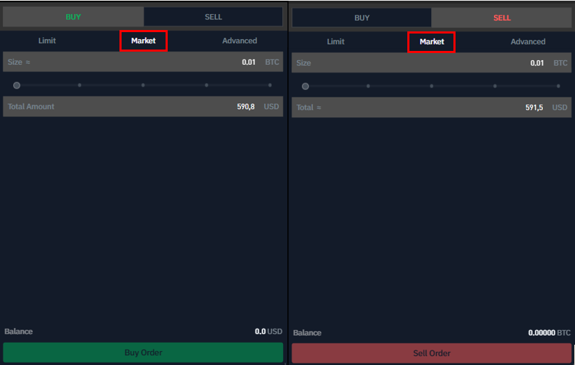 Tento príkaz sme si v podstate ukázali aj na spotovej peňaženke aj na spotovej burze v predošlých postupoch. Nezadávate cenu, ale iba množstvo kryptomeny, ktorú chcete obchodovať. Objednávka sa zrealizuje okamžite, keďže burza váš príkaz vždy spáruje s najlepšou aktuálnou protistranou.
