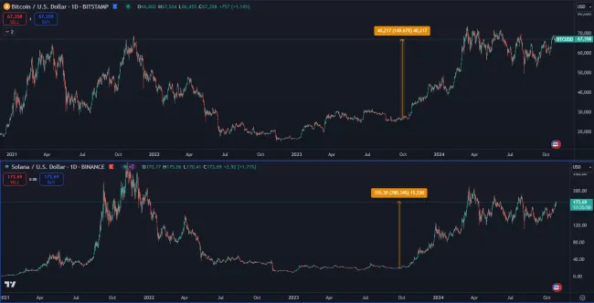 Všeobecne platí, že tie kryptomeny, ktoré dosiahli v posledných vzostupoch najvyššie zhodnotenia, sa pravdepodobne budú správať podobne aj v najbližšom rastúcom trende. Preto jedným z kľúčových faktorov môže byť porovnanie cenovej výkonnosti konkrétneho altcoinu s Bitcoinom.