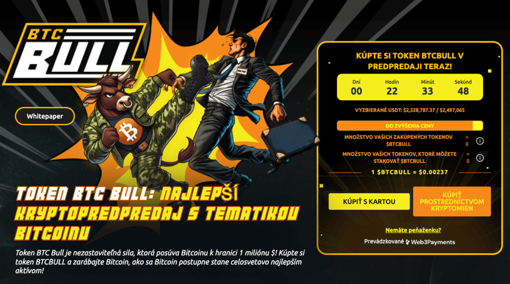 Predpredaj tokenov BTCBULL je v plnom prúde. Tvorcovia projektu od nedávneho spustenia už vyzbierali viac ako 2,4 milióna dolárov. Používatelia môžu počas predpredaja využiť aj štedré odmeny stakingového programu.