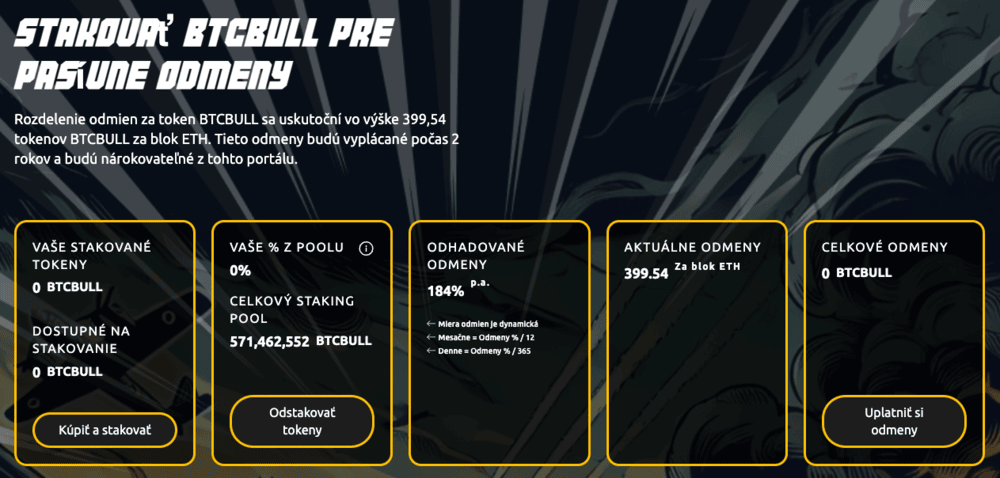 Staking program tokenov BTCBULL. Zdroj: btcbulltoken.com