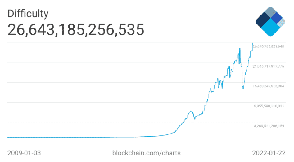 Keď však vysídlení baníci obnovili prevádzku z iných krajín, problémy so sieťou zaznamenali od augusta 2021 drastické zotavenie. Výsledkom bolo, že 22. januára sieť BTC zaznamenala ATH vo výške 26,643 bilióna.