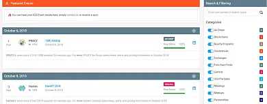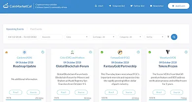 Stránky Coinmarketcal vznikli približne pred rokom. Ide o najznámejší portál, na ktorom sa môžete dozvedieť o plánovaných udalostiach v kryptosvete. Návštevník získa prehľad na základe klasického kalendára, no má aj možnosť odfiltrovať si ním preferované kryptomeny, prípadne burzy a kategórie. V nich má na výber možnosť sledovania airdropov, konferencií, 31ohlásených partnerstiev, či informácie o nadchádzajúcich deleniach. Kredibilite stránky nahráva aj fakt, že sami návštevníci môžu potvrdiť, respektíve vyvrátiť autenticitu správy. Samozrejmosťou je aj uvedenie zdroju ku každej nadchádzajúcej udalosti.