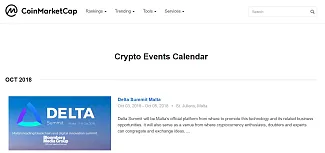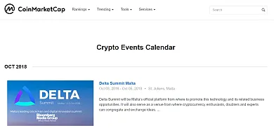 Coinmarketcap pozná asi každý, no veľa ľudí ho primárne využíva len na sledovanie ceny jednotlivých coinov. Tento web však ponúka aj možnosť odsledovať si dátumy nadchádzajúcich blockchainových konferencií. Informácie týkajuce sa výlučne noviniek jednotlivých kryptomien však na tomto webe nenájdete. Ak vás teda zaujímajú udalosti, stretnutia či zasadania, všetky potrebné informácie sú tu.