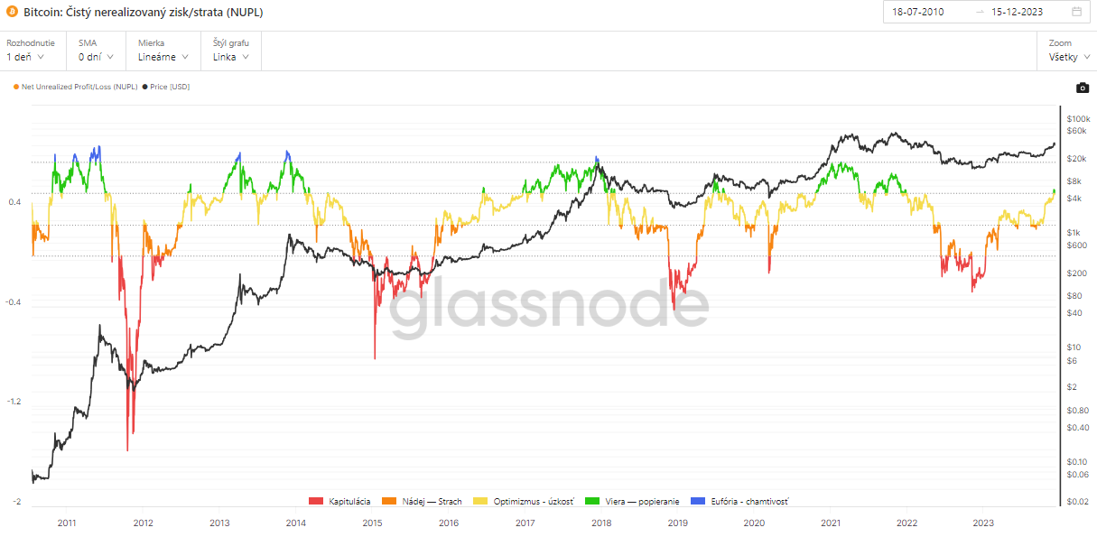 Bitcoin: metrika NUPL. Zdroj: Glassnode