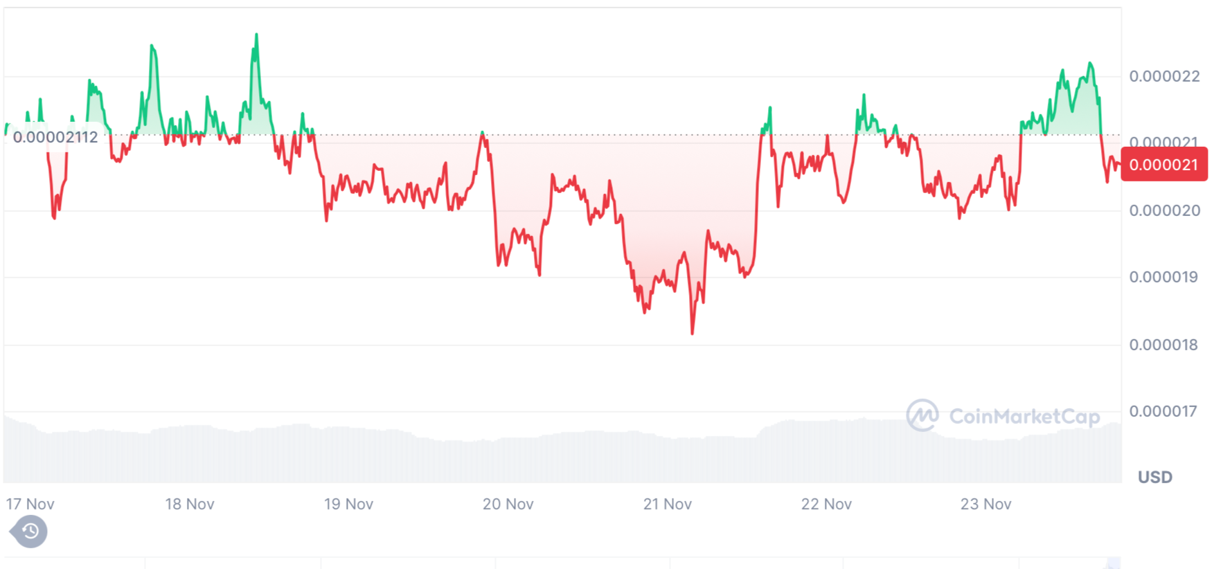 Pepe (PEPE) zaznamenáva v poslednej dobe významné cenové pohyby. Za posledný mesiac cena mince prudko vzrástla o 103,52 %, čo značí silný vzostupný trend. Za posledných šesť mesiacov získala 46,50 %, čo ukazuje výrazný rast počas dlhšieho obdobia. Avšak za posledný týždeň zaznamenala mierny pokles o 0,42 %, čo naznačuje určitú krátkodobú volatilitu.
