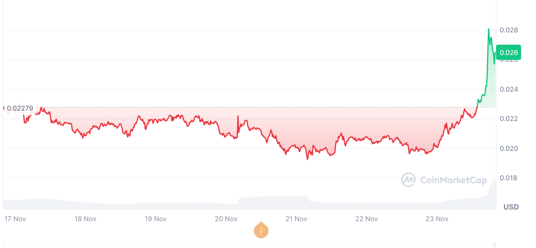Do budúcnosti je najbližšia úroveň odporu na 0,02627 dolároch. Pohyb nad túto úroveň by mohol viesť k nárastu ceny približne o 25 % zo súčasných úrovní, cieliac na druhý odpor na úrovni 0,03123 dolárov – potenciálny zisk takmer 50 %. Naopak, ak cena klesne, najbližšia podpora je na úrovni 0,01635 dolárov, čo predstavuje pokles približne o 22 %. Ďalšia podpora leží na úrovni 0,01139 dolárov, čo by znamenalo pokles približne o 46 %. Obchodníci sledujú tieto kľúčové úrovne pre náznaky budúceho pohybu.