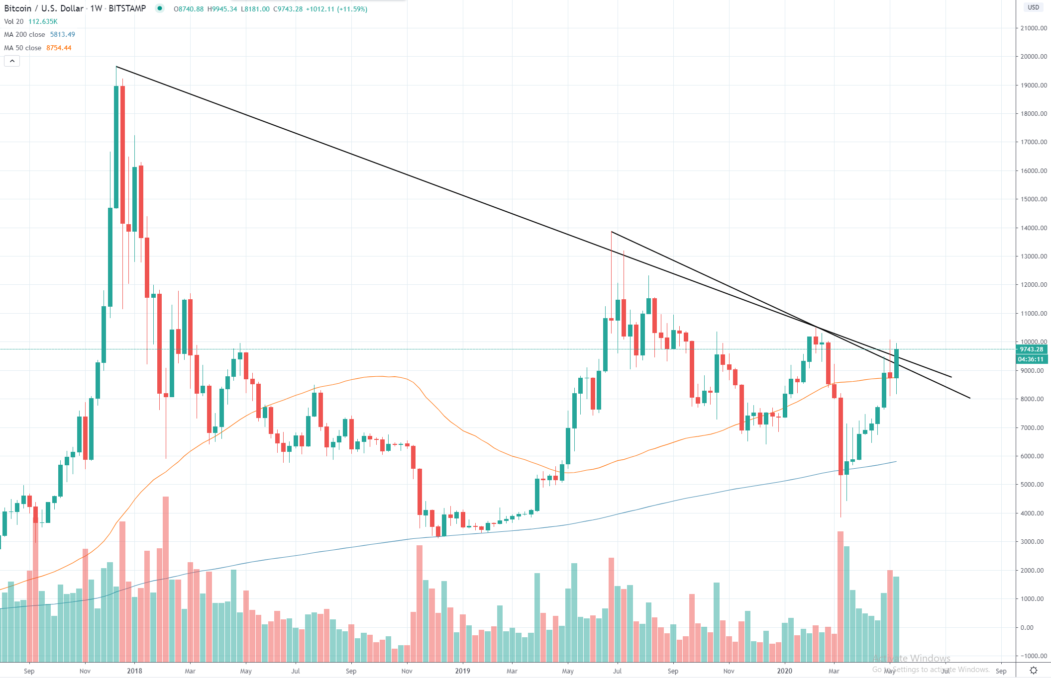 Dnes je nedeľa a tá je vo svete kryptomien vždy veľmi vzrušujúca. V nedeľu sa totiž uzatvárajú weekly sviece a zdá sa, že tento týždeň Bitcoin KONEČNE uzavrie nad dlhodobou klesajúcou trendline. Táto línia Bitcoin dva a pol roka tlačila smerom dole a držala ho v downtrende. Takmer tisíc-dňový bear market však, zdá sa, končí a začína nový rastový cyklus, ktorý nás zavedie na nové historické maximum a ešte vyššie.