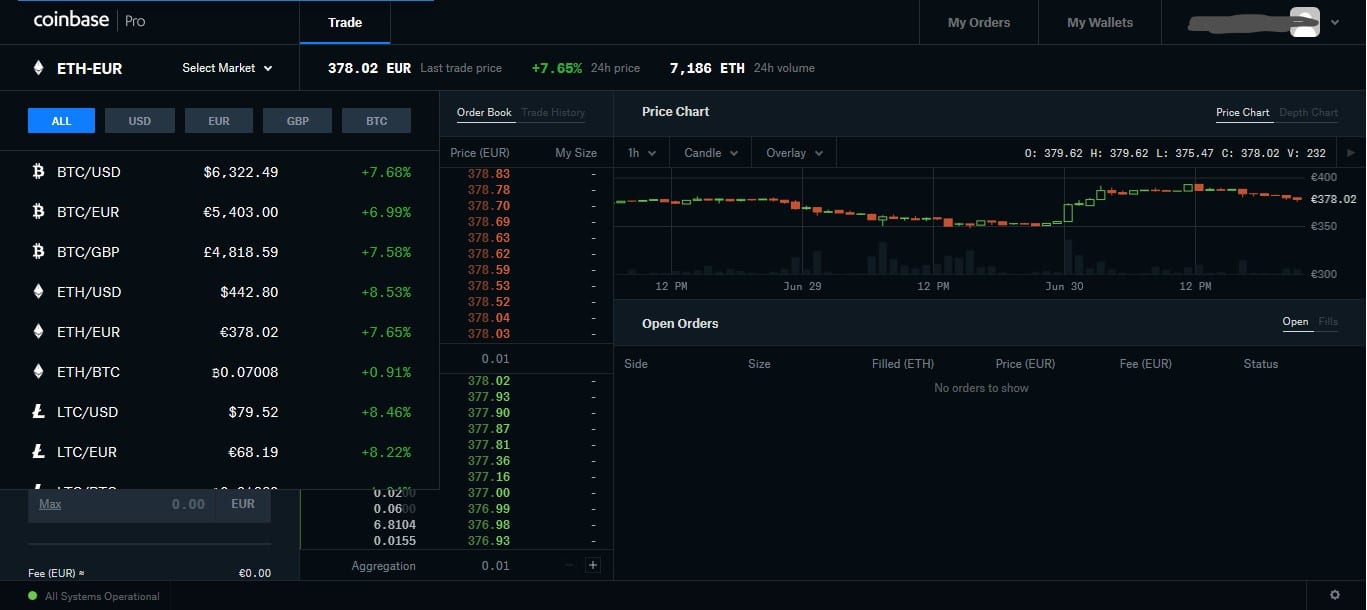 Čo sa týka poplatkov a najdôležitejších funkcií, tu je náš návod na GDAX (odkaz TU). Ten môžete považovať stále za platný, nič sa totiž našťastie nezmenilo. Lenže Coinbase chceli urobiť nejakú zmenu a pretože ešte nezalistovali žiadnu zo sľubovaných kryptomien, tak si asi povedali, že si trochu pohrajú so vzhľadom.