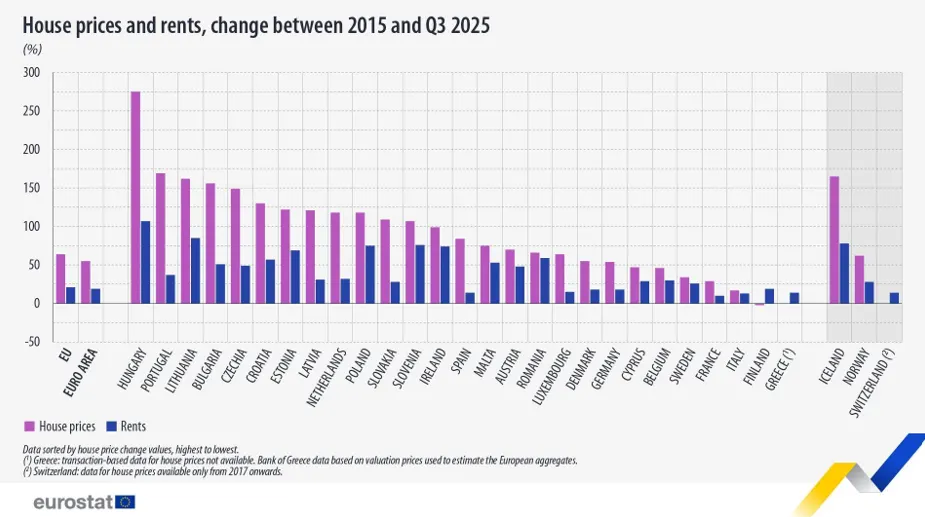 Ceny bývania a nájmov. Zdroj: ec.europa.eu/eurostat