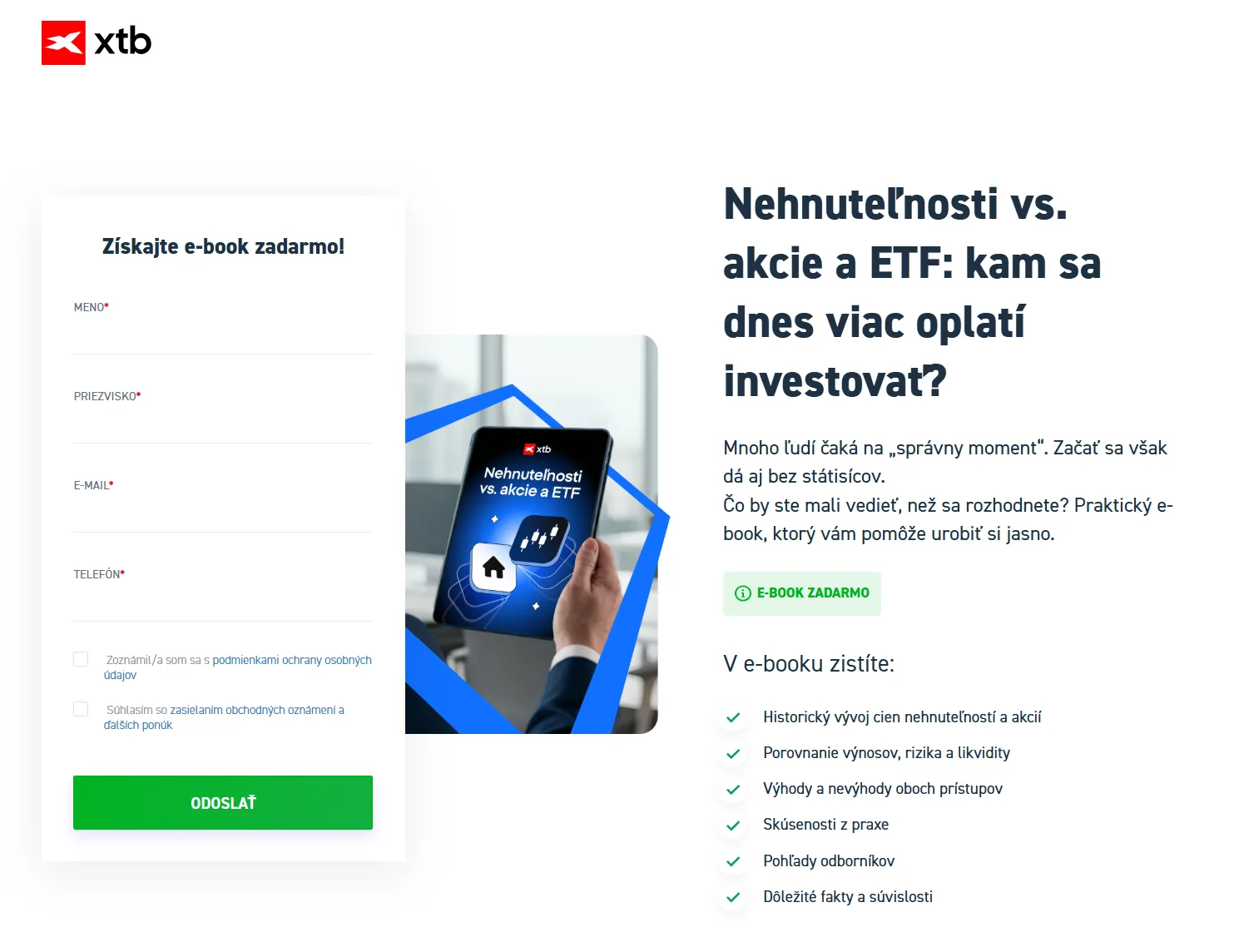 Ak chcete lepšie pochopiť, aké miesto môžu mať nehnuteľnosti, akcie a ETF v dlhodobom investičnom portfóliu, siahnite po bezplatnom e-booku od XTB.