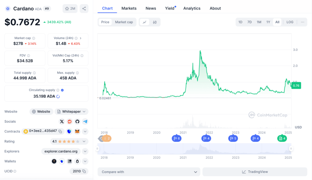 Cardano (ADA) stratilo iskru