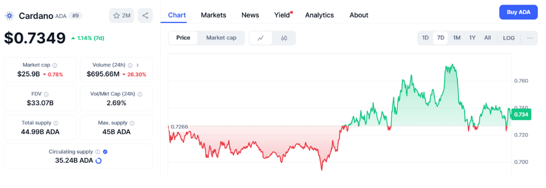 Trhová cena kryptomeny ADA. Zdroj: coinmarketcap.com