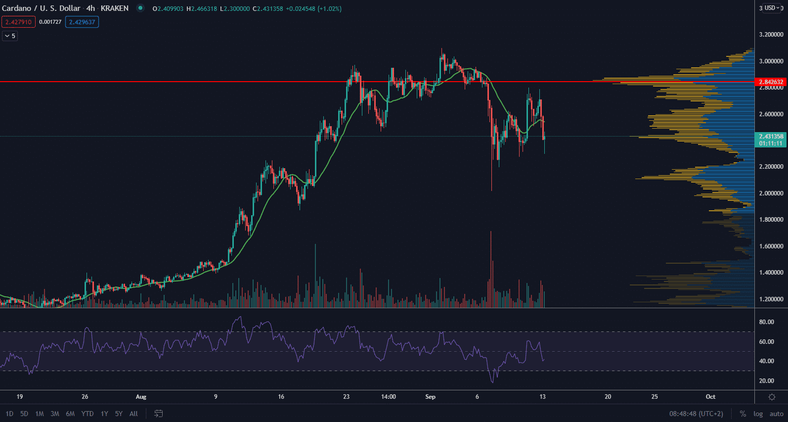 Cena Cardana sa medzitým obchoduje tesne pod ATH. V čase písania článku má ADA hodnotu 2,43 $. Pravdepodobne sa vytvára nová sideway štruktúra pred pokračovaním ďalšieho rastu. ADA je stále aj počas tejto korekcie jeden z top altcoinov, ktorý zaznamenáva retracement smerom nahor.