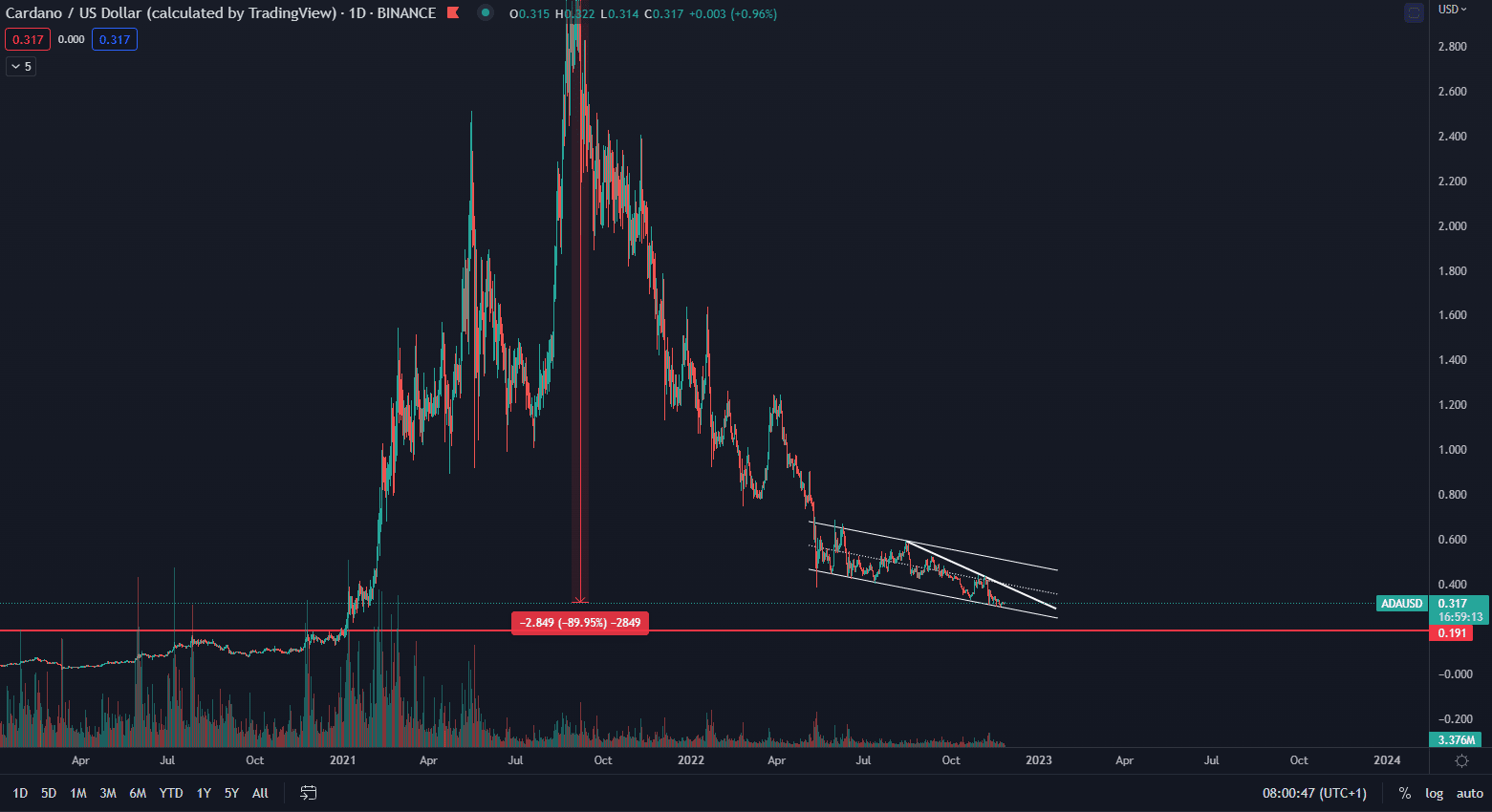 Dlhodobý klesajúci trend tokenu ADA je spôsobený predovšetkým všeobecnou kryptomenovou korekciou za posledný rok a odlivom investorov z rizikového trhu z dôvodu obáv uprostred neistej ekonomickej situácie. Cardano ale čelí aj ďalšiemu problému. Kryptomenu vlastní až príliš veľký počet maloobchodných investorov a sieť čelí nedostatku inštitucionálneho záujmu, ktorý predovšetkým slúži ako hnacia sila digitálnych aktív.