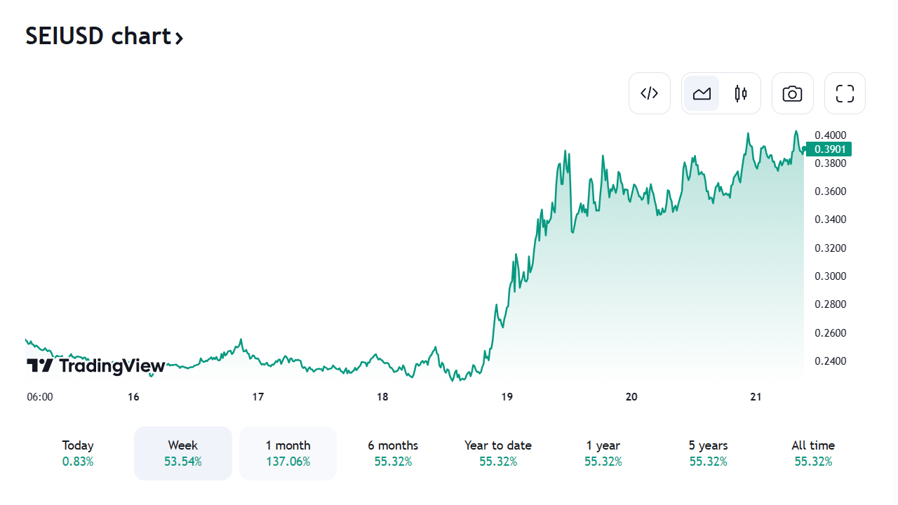 Sei sa nedávno dostal na titulky altcoinového trhu výrazným nárastom, čo naznačuje silný záujem trhu. Takýto prudký nárast často priťahuje pozornosť retailových aj inštitucionálnych investorov, čo prispieva k zvýšeniu objemov obchodovania a likvidity trhu.
