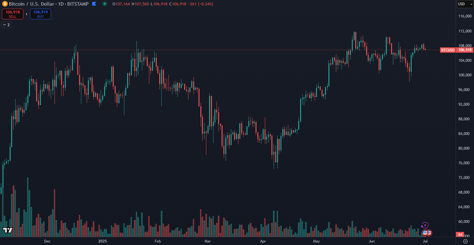 Bitcoin sa obchoduje blízko maxima. Zdroj: tradingview.com