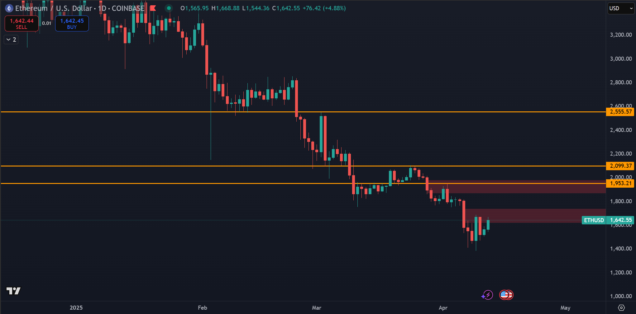 Cieľové úrovne pre Ethereum. Zdroj: tradingview.com