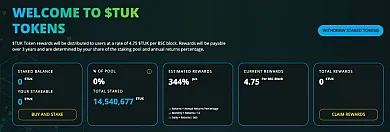 eTukTuk ponúka investorom aj možnosť stakingu, preto im tokeny budú vynášať zhodnotenie v aktuálnej ročnej odmene 344 %. Už dnes presahuje počet stakovaných tokenov množstvo 14,5 milióna TUK.