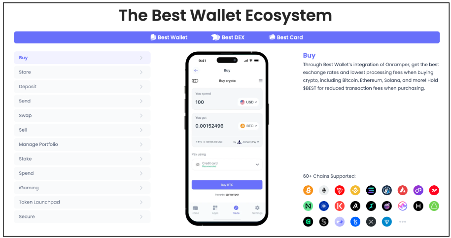 Platforma Best Wallet taktiež ponúka množstvo iných výhod, ako napríklad vlastnú decentralizovanú burzu Best DEX, podporu viac ako 60 blockchainov alebo pripravovanú krypto platobnú kartu Best Card.