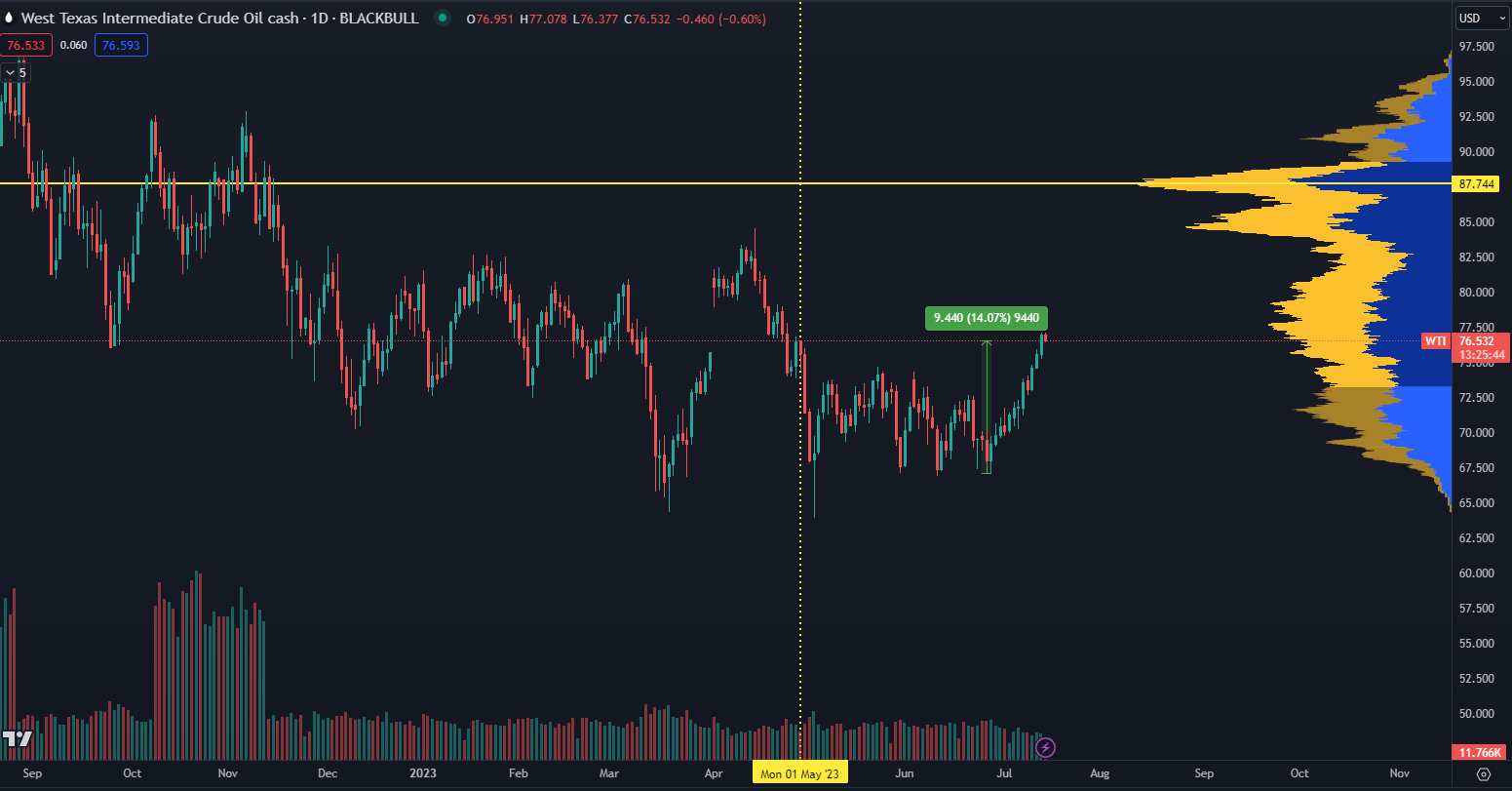 Stále vysoký dopyt spolu s poklesom inflácie v USA stimulovali rast ceny ropy. Okrem toho sa objavujú prvé náznaky nižšieho exportu ruskej ropy, čo opäť tlačí ceny nahor. Ceny ropy majú údajne ešte priestor na ďalší rast v priebehu druhého polroka, povedal pre agentúru Bloomberg šéf komoditného oddelenia Austrálskej banky Commonwealthu, Vivek Puri.