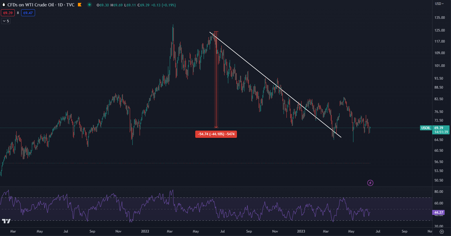 Ropa je v dlhodobej korekcii. Zdroj: TradingView