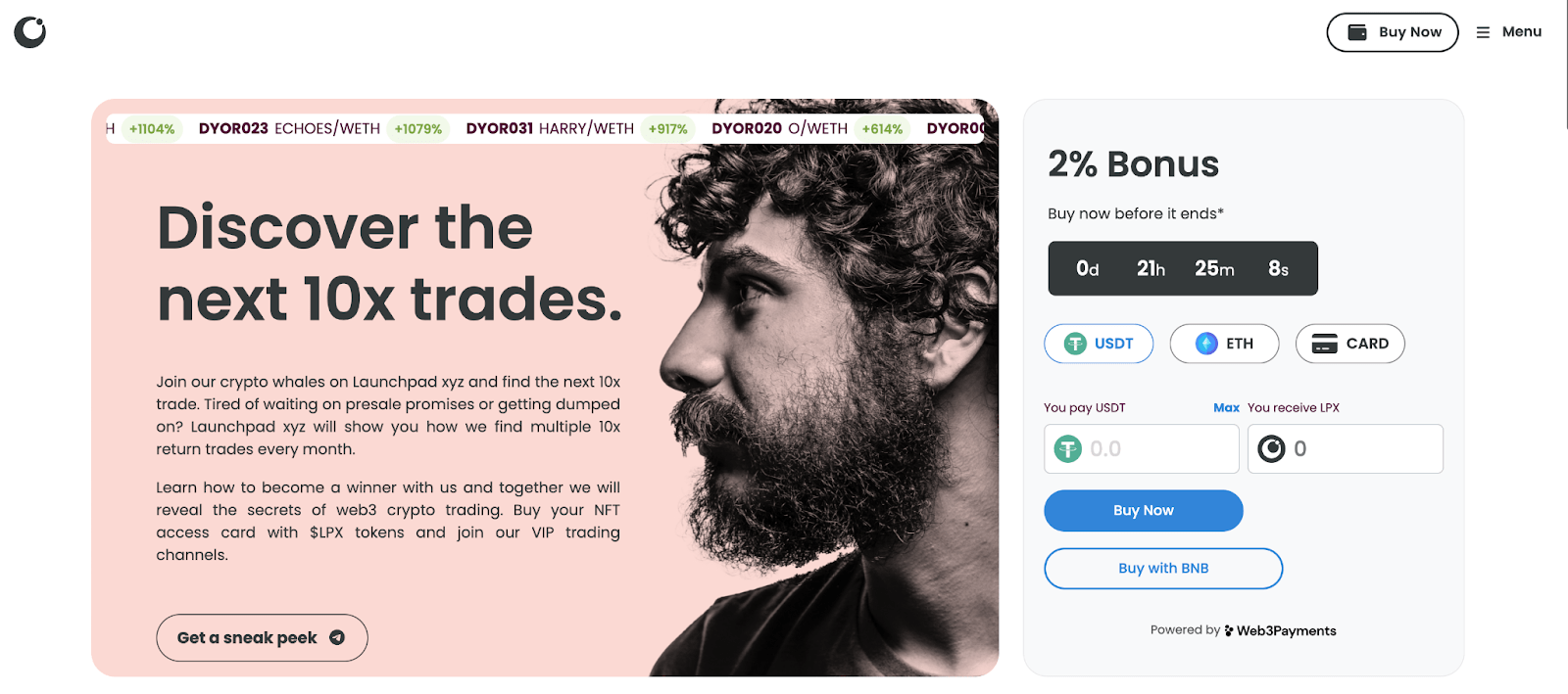 Solana môže byť pre mnohých investorov ideálnou investičnou možnosťou, ale ak nechcete investovať príliš veľa, máme pre vás iné riešenie. Projekt Launchpad XYZ sa stále nachádza vo fáze predpredaja a za 1 dolár získate 23 tokenov LPX. Viac o projekte sa dozviete nižšie.