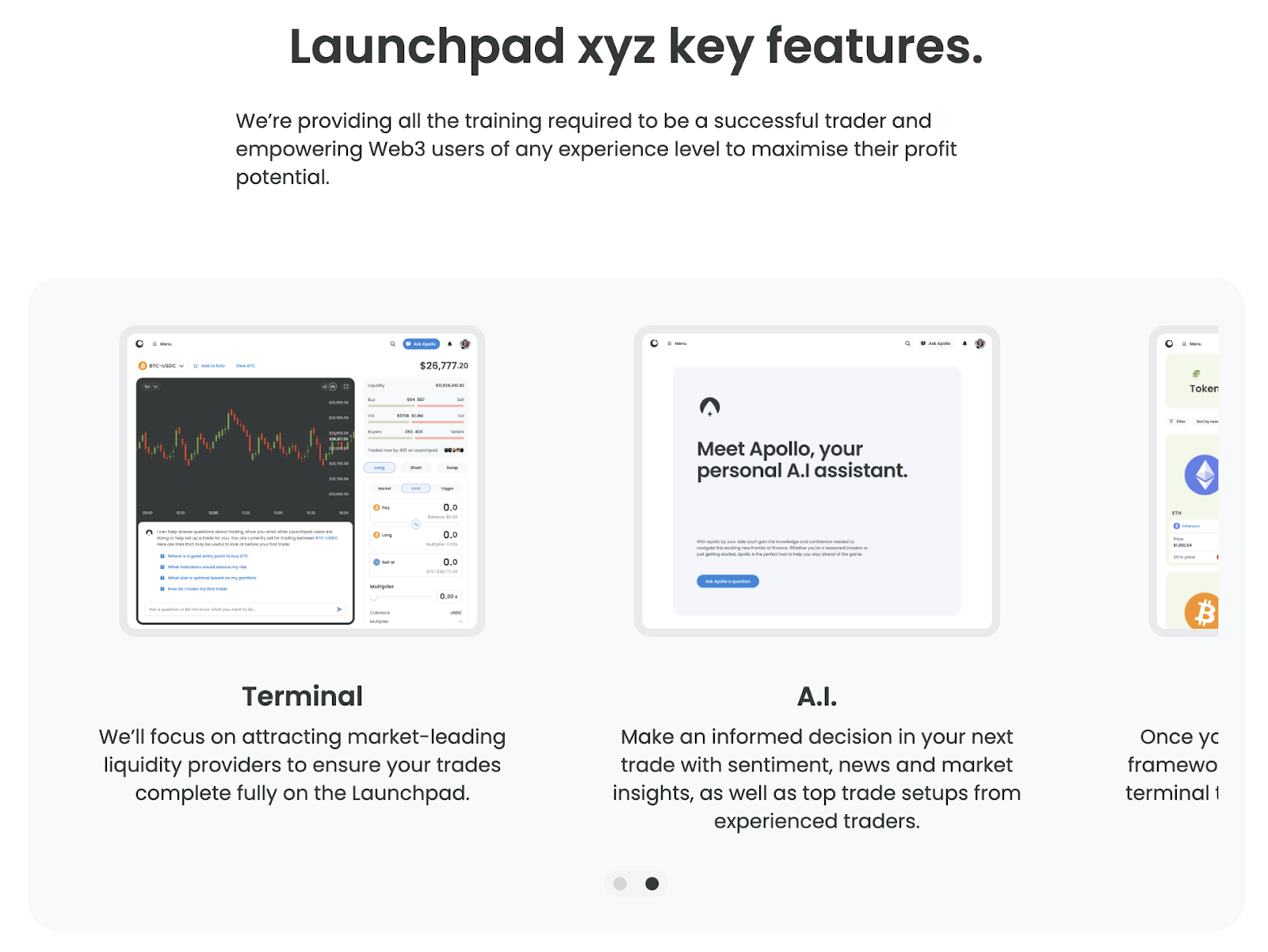 Základnou funkciou projektu predstavuje Launchpad Quotient (LPQ), engine AI, ktorý vyhodnocuje zdroje údajov s cieľom poskytnúť spotrebiteľom stratégie obchodovania s kryptomenami na mieru. Mnohí analytici predpovedajú, že sa svet kryptomien zmení v dôsledku zapojenia umelej inteligencie.