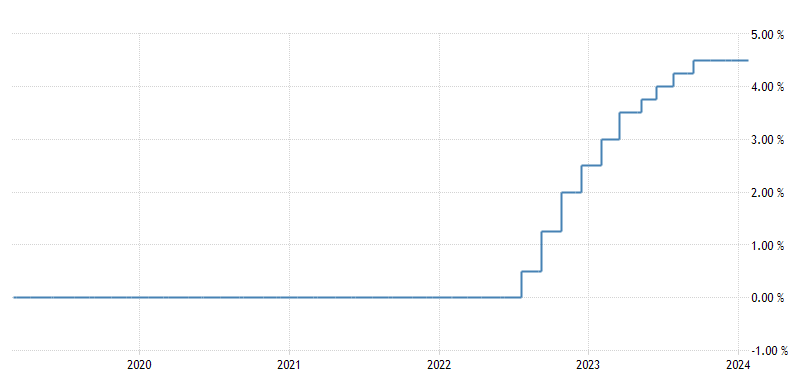 Naposledy sme videli takúto vysokú úrokovú sadzbu v eurozóne ešte v roku 2001, avšak tempo rastu za posledné dva roky prekonalo všetky rekordy od vzniku ECB. Najbližšie monetárne zasadnutie sa bude konať už 7. marca 2024 vo Frankfurte.