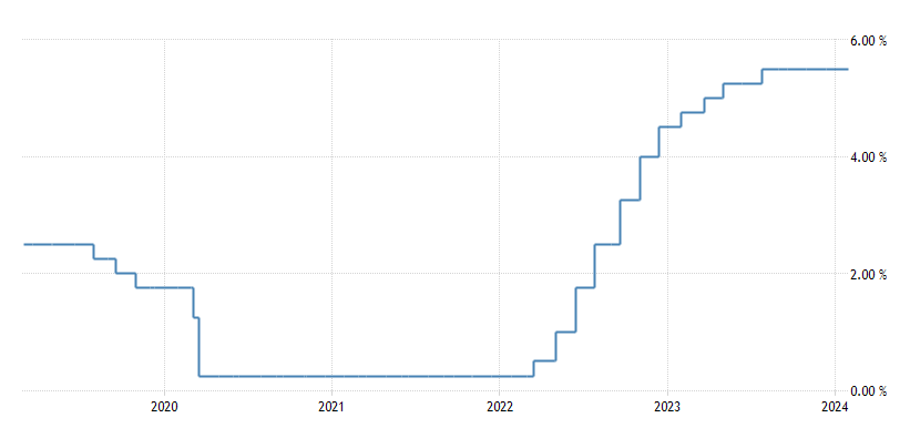 Kým sa FED obáva skorého zníženia sadzieb, ich vysoká úroveň spomaľuje ekonomiku. Ani ponechanie vysokej sadzby príliš dlho teda nie je cesta. Aj keď nevieme kedy začnú sadzby klesať, tvorcovia politiky FED-u sa zhodli, že reštriktívna menová politika zrejme skončila a sadzby dosiahli svoj vrchol.