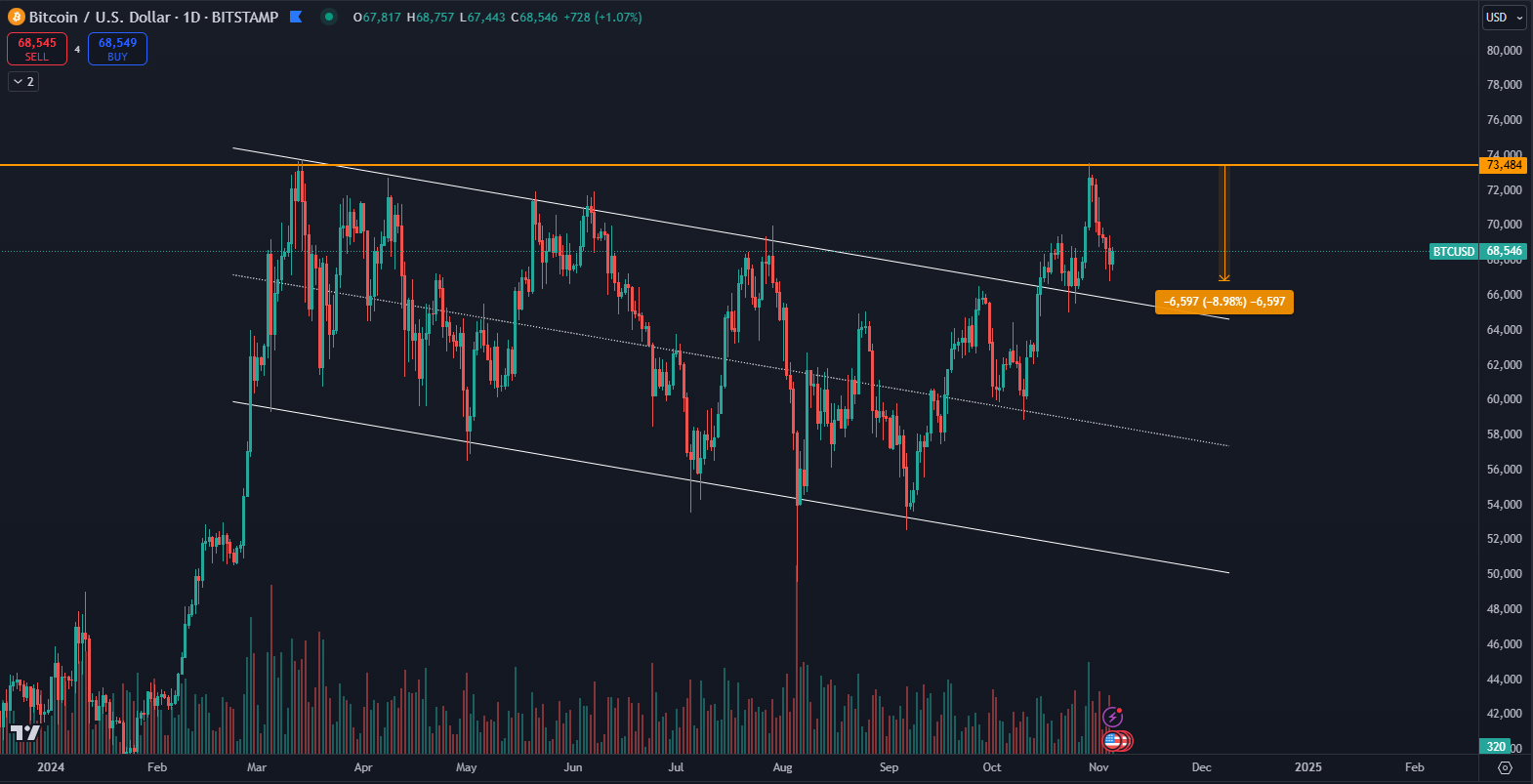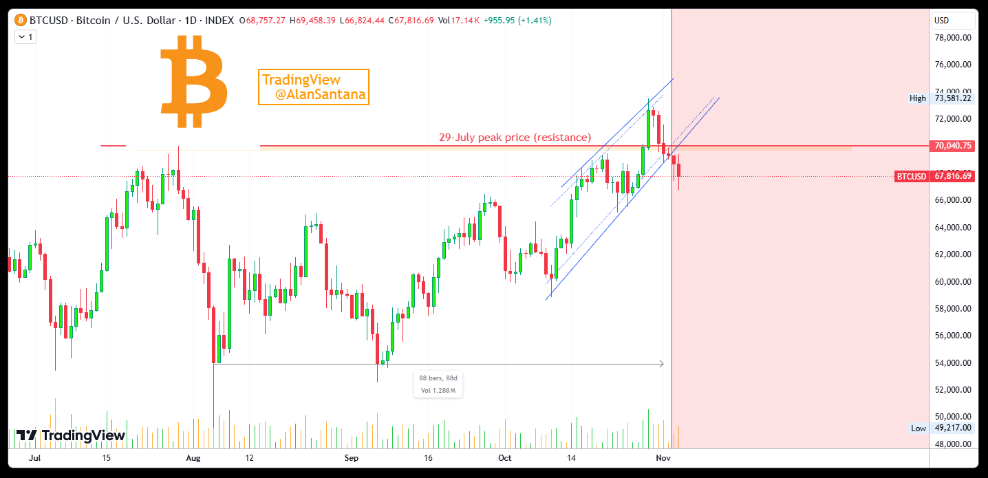 - Bitcoin nedokázal udržať úroveň 70 000 dolárov, čo signalizuje možnú pascu.