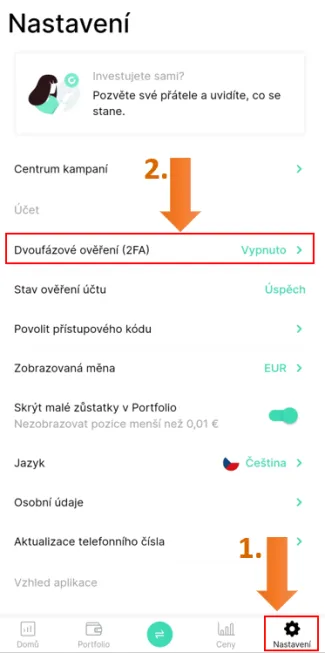 Po úspešnom prihlásení do aplikácie a overení totožnosti každému odporúčame okamžite zapnúť dvojfaktorové overenie. Dvojstupňové overenie znamená, že do svojho účtu pridávate ďalšiu úroveň zabezpečenia. Táto druhá vrstva zabezpečenia slúži hlavne pre prípad, ak dôjde k odcudzeniu vášho hesla.