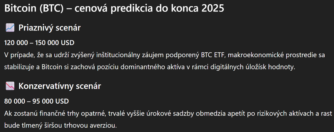 Cenová predikcia ChatGPT pre Bitcoin. Zdroj: chatgpt.com