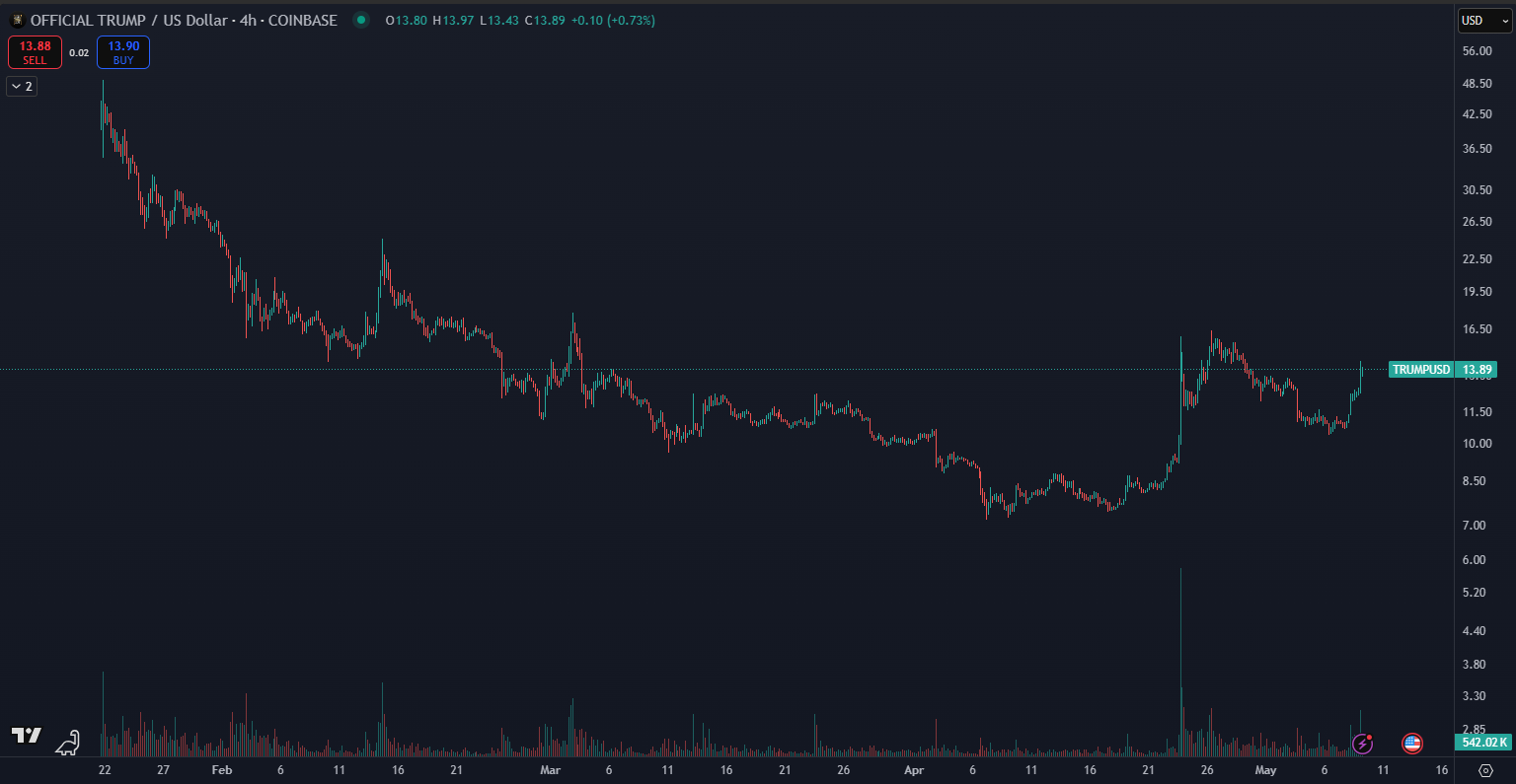 TRUMP token, spustený 17. januára 2025, vykazuje typické črty meme coinov – extrémnu volatilitu a silnú komunitu. Od oznámenia večere 23. apríla zaznamenal token zvýšený nákupný tlak, no aj prudké cenové výkyvy. V čase písania článku dosahovala jeho cena 13,87 dolára, čo predstavuje vzostup o viac než 10 % za posledných 24 hodín.