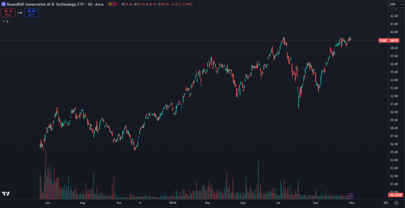 Ako uvádza finančný portál Finbold, nový ETF fond Roundhill Generative AI & Technology (CHAT) predstavuje zaujímavú investičnú príležitosť pre investorov, ktorí chcú participovať na raste sektora umelej inteligencie. Fond kombinuje popredné technologické giganty ako Nvidia, Google a Microsoft s menšími, ale sľubnými spoločnosťami.