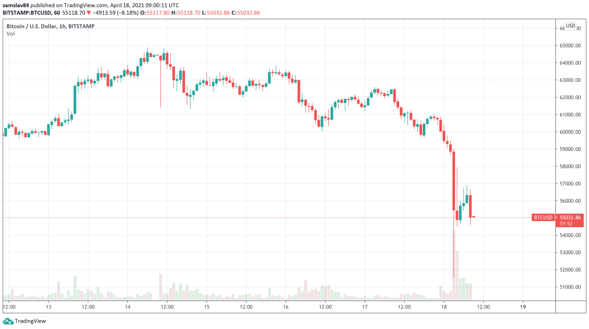 Špekuluje sa, že za tento prepad môže burza Coinbase. Teda… nie, že by začala predávať Bitcoiny. To vôbec. Ale príchod Coinbasu na NASDAQ v apríli výrazne zvýšil záujem o krypto.