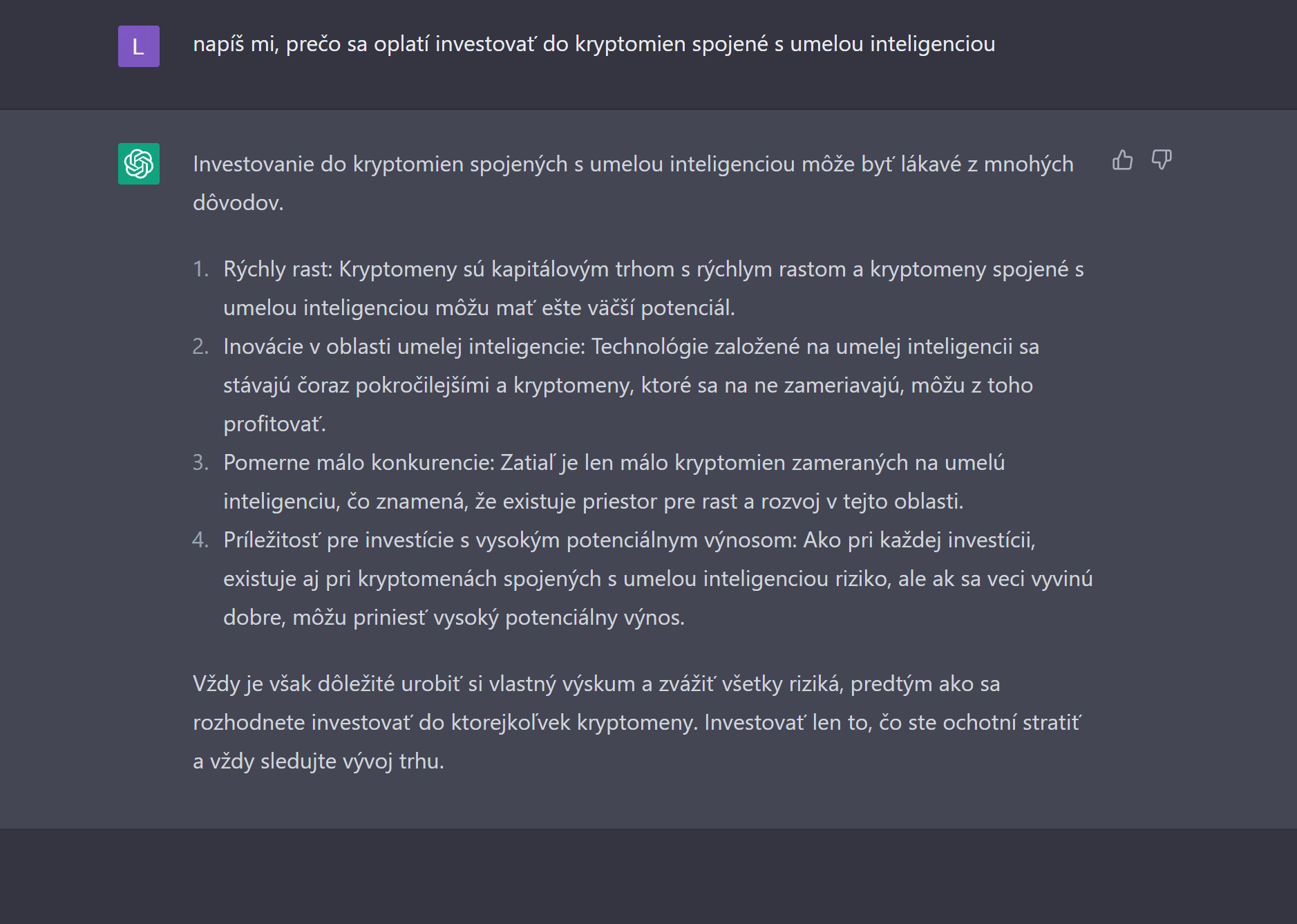Umelá inteligencia je zatiaľ fenomén tohto roka. Cez rôzne aplikácie a weby si vieme vytvoriť obrázok, dať napísať článok alebo dokonca vytvoriť marketingový text. Na jednej strane je veľké riziko vstupovať do kryptomien, ktoré sú v 1 000 % zisku. Na strane druhej sú tu stále aj ostatné altcoiny alebo dokonca akcie, ktoré majú potenciál rastu, pretože riešia využiteľné produkty.