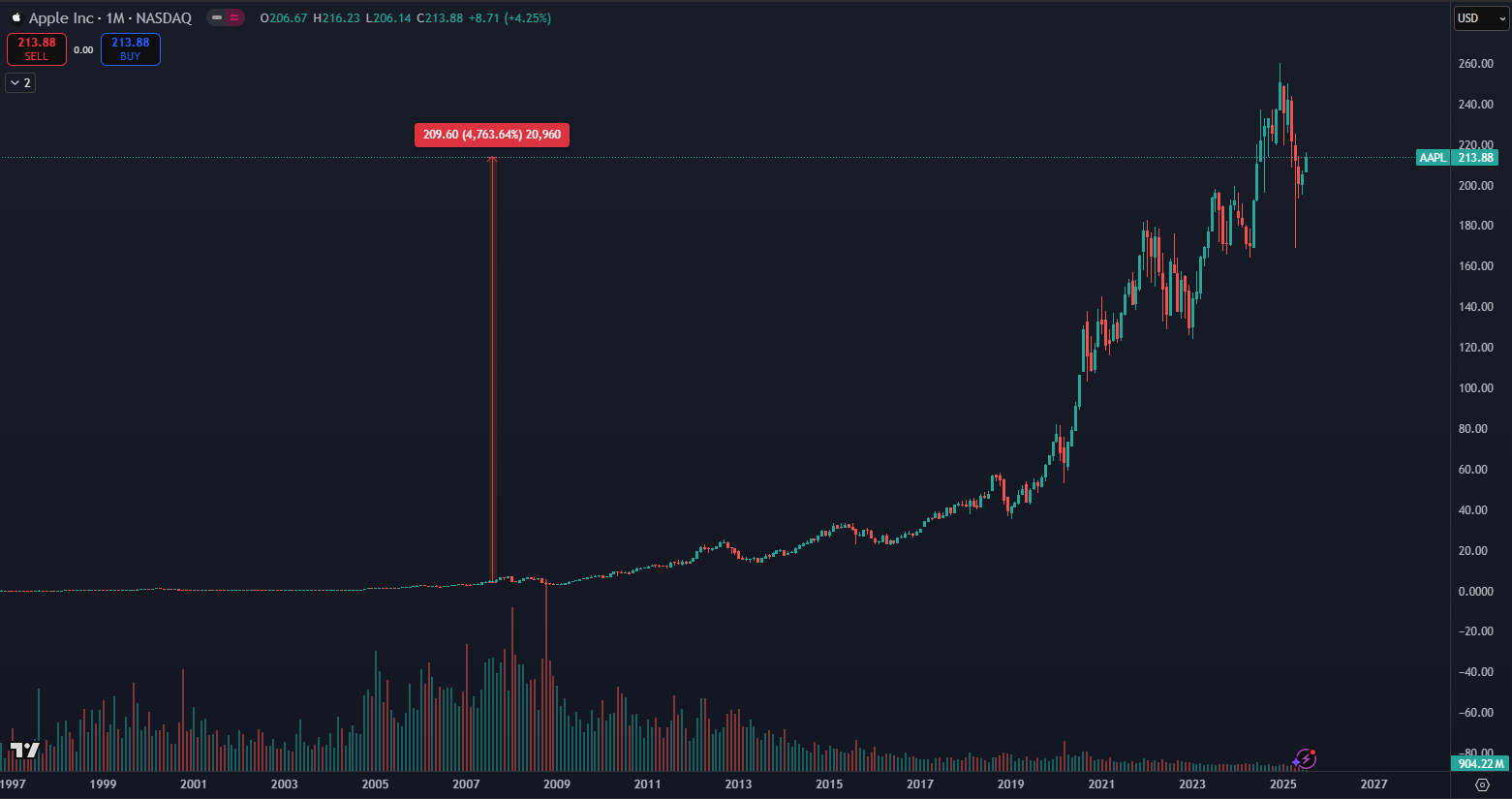 Celkový zisk akcií Apple od uvedenia prvého iPhonu presahuje 4 700 %.