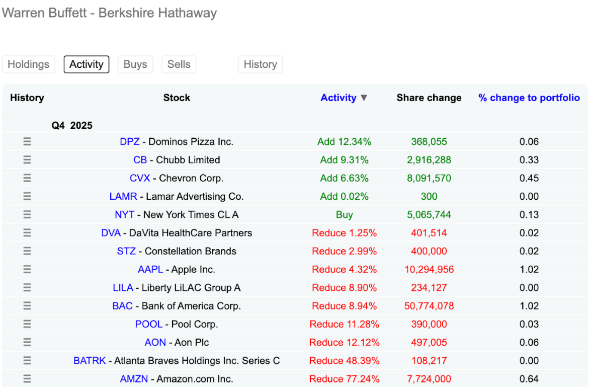 Zmeny v portfóliu Buffetta