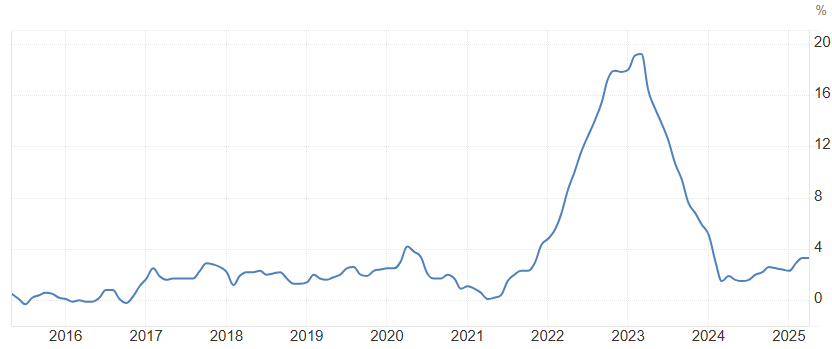 Inflácia jedla v EÚ. Zdroj: tradingeconomics.com