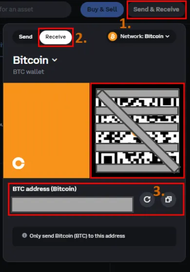 V tomto prípade je postup opäť veľmi jednoduchý. Stačí kliknúť na Send & Receive -> Receive. Následne si vyberiete kryptomenu, ktorú chcete vložiť, a zobrazí sa vám adresa, ktorú vložíte pri výbere kryptomeny v externej peňaženke.