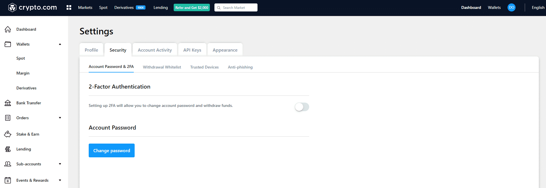 Na rozdiel od konkurenčných búrz, prihlásenie do Crypto.com automaticky vyžaduje dvojfaktorové overenie a overenie totožnosti. To znamená, že keď sa prvýkrát prihlásite na účet burzy, tak automaticky vás bude pýtať vaše telefónne číslo. Na vaše telefónne číslo vám príde 6-miestny kód, ktorý je potrebné opísať.