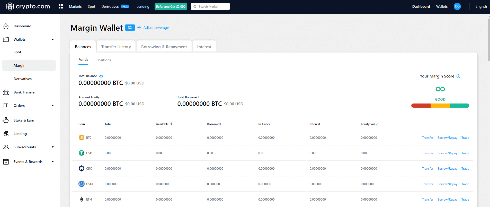 Po akceptovaní podmienok vstúpite do maržovej peňaženky. Nasledujúci obrázok zobrazuje maržovú peňaženku a jej rozhranie.