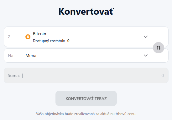 Funkcia konverzie na crypto4me umožňuje okamžitú výmenu medzi rôznymi digitálnymi aktívami. Po kliknutí na tlačidlo Konvertovať” sa otvorí jednoduché rozhranie, kde si zvolíte menu, ktorú odosielate, a tú, ktorú chcete prijať. Celý proces prebieha v reálnom čase za aktuálne kurzy, vďaka čomu je správa portfólia mimoriadne efektívna.