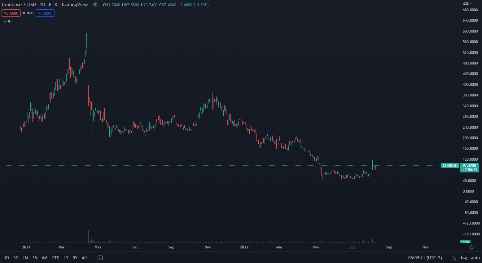 V druhom kvartáli roku 2022 dosiahol Coinbase čistú stratu až 1,1 miliardy dolárov. Táto strata predstavuje pokles ceny jednej akcie zhruba o 4,98 dolárov, čo je takmer dvojnásobok očakávania analytikov, ktorí predpovedali stratu 2,65 dolárov.