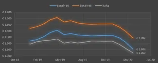 - Benzín 98 – nárast o 1,6% na 1,280 € za liter