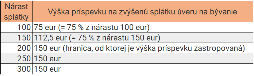 Už skôr sme informovali, že štát uhradí 75 % z nárastu splátky, a to až do maximálnej výšky 150 eur mesačne, resp. 1 800 ročne. Dlžník si podá daňové priznanie za rok 2023 a v ňom si uplatní bonus, resp. ho uplatní zamestnávateľ na základe potvrdenia od banky, ktoré obsahuje informácie o zmene výšky splátky.
