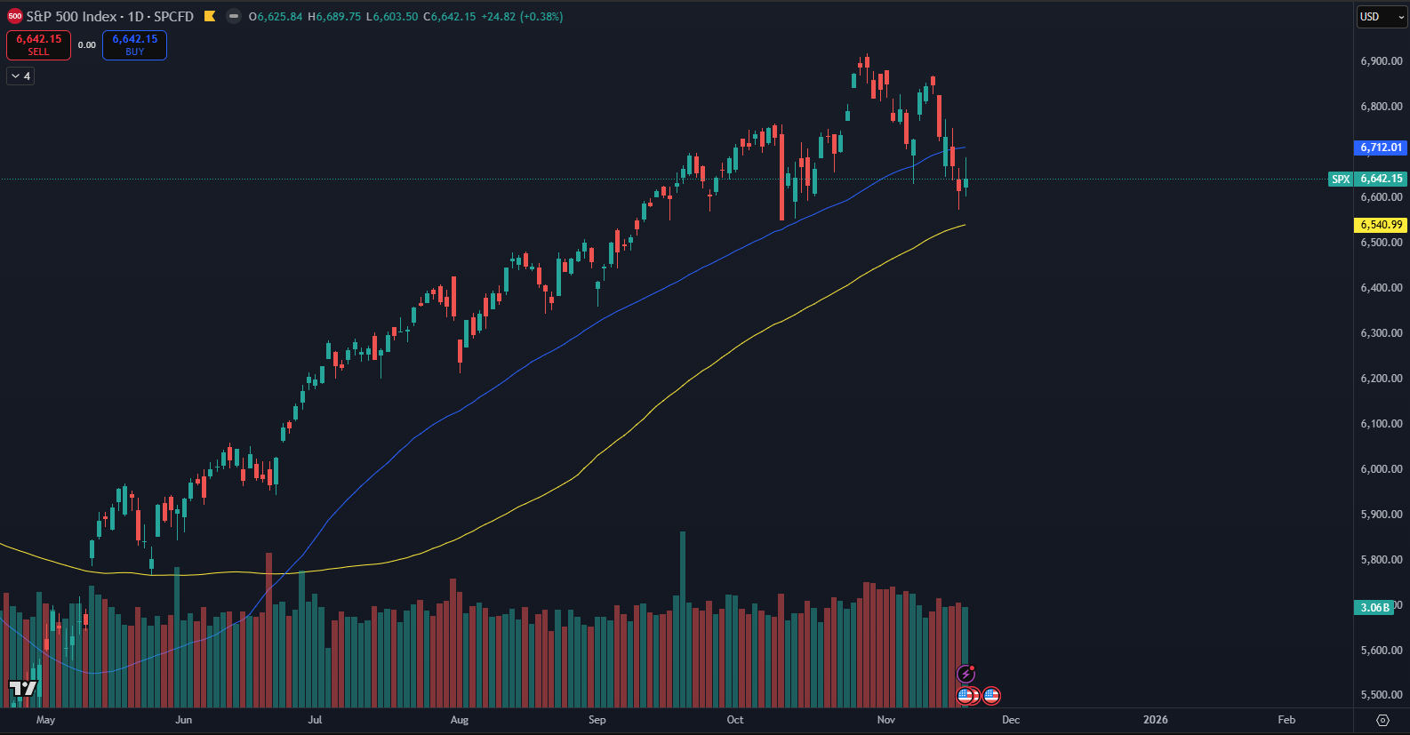Index sa pohybuje okolo hodnoty 6 642 bodov, čo predstavuje približne 4 % pokles od historického maxima. Aj keď to na prvý pohľad nepôsobí dramaticky, dôležité je vnímať širší kontext.