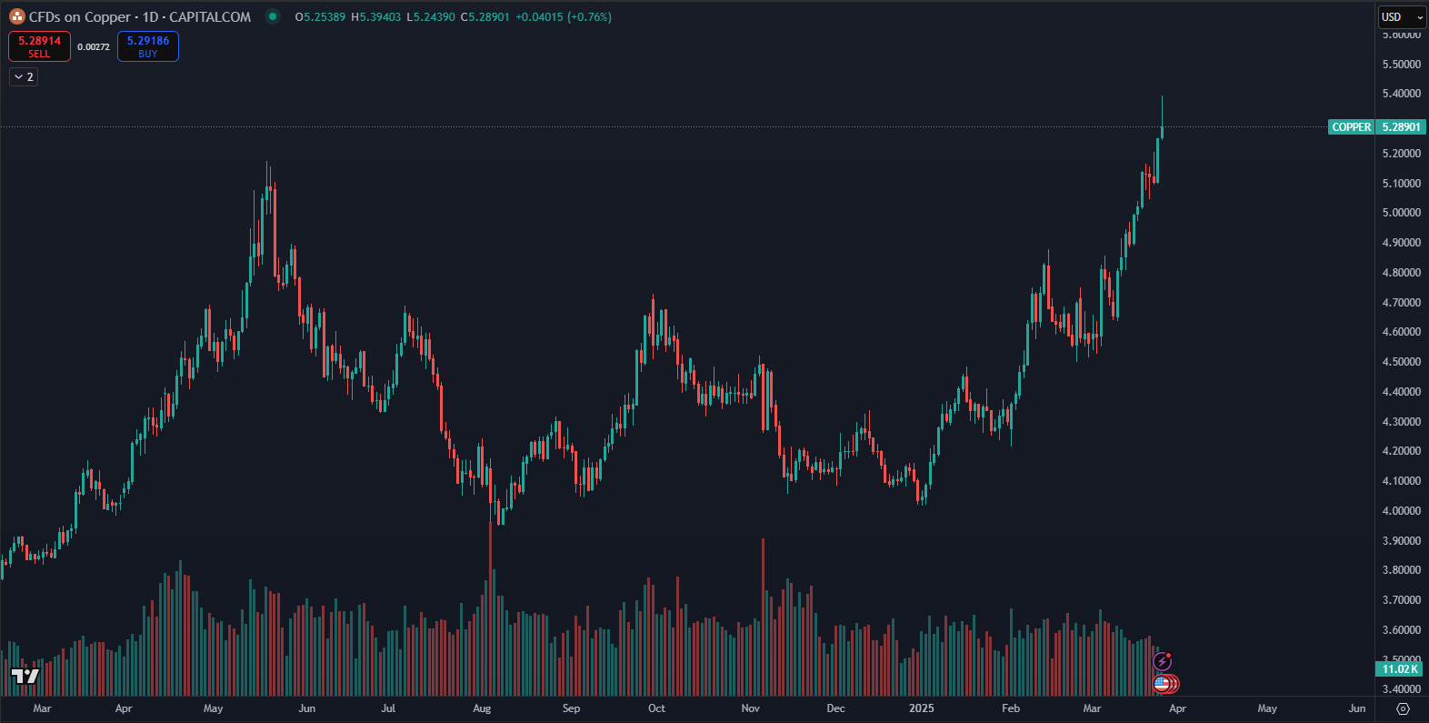 Zlato: V posledných mesiacoch pokračovalo v prekračovaní historických maxím, čo je výsledkom neistoty na globálnych trhoch. Investori sa uchyľujú k zlatu ako k bezpečnému útočisku v čase ekonomických a politických turbulencií. Zlato je považované za aktívum, ktoré uchováva hodnotu aj v čase inflácie a ekonomickej neistoty. Tieto faktory spolu s pokračujúcim obchodným napätím spôsobili jeho silný rast, ktorý prekvapil aj najoptimistickejších analytikov. Zlato dokonca dokázalo prekonať prvýkrát v histórii cenu 3 000 dolárov.
