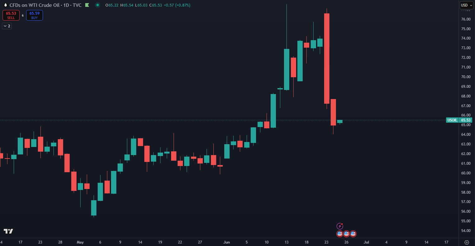 Ropa zaznamenala rekordný rast, keď za 40 dní stúpla o 40 %, čo súviselo hlavne s eskaláciou konfliktu medzi Izraelom a Iránom. Tento regionálny spor zvýšil obavy z možného prerušenia dodávok ropy, najmä cez Hormuzský prieliv, ktorý je kľúčovým tranzitným bodom pre približne pätinu svetových zásob ropy. Riziko blokády alebo obmedzenia prepravy v tejto oblasti viedlo k prudkému nárastu cien.