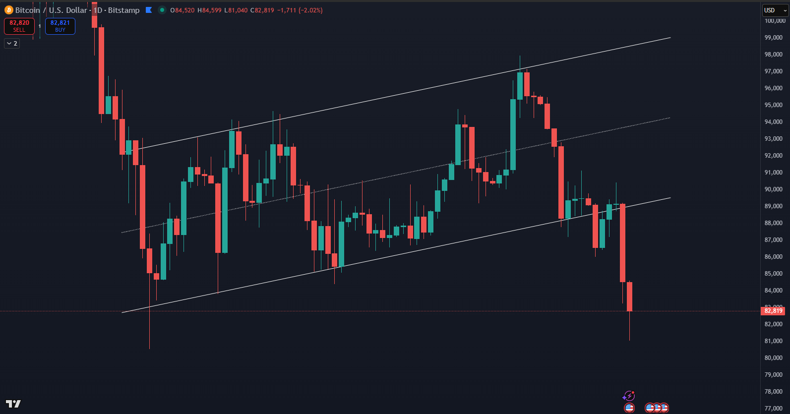 Bitcoin padá na 81 000 dolárov